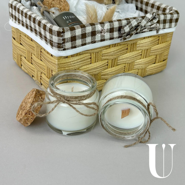 - Две свечи в небольших декоративных подсвечниках с пробковыми крышками. Свечи изготовлены из высококачественного соевого и кокосового воска и оснащены деревянным и хлопковым фитилем для равномерного и долгого горения. Ненавязчивый аромат свечей - сирень и магнолия&базилик – наполнит комнату расслабляющей атмосферой. Объем одной свечи: 70 мл.