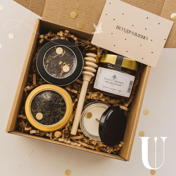 Набор оформлен в крафтовой коробочке 16*16 с атласной лентой. Подарочный пакет в комплекте!