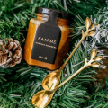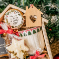 Подарочный набор из медовой свечи, бомбочки для ванны, маршмеллоу, клюквенного джема и вязаных носочков