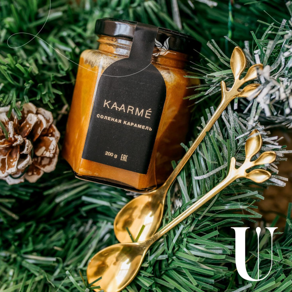 Набор для неё из баночки соленой карамели, женских носочков, медовой свечи, скраба для тела, бомбочки для ванны и небольшой открытки