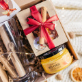 Осенний подарочный набор из клюквенного джема с грецким орехом, медово-имбирный пряник, ароматный чай и открытки