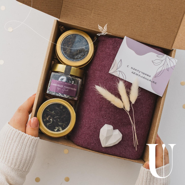 Набор для неё из ароматного чая, соевой свечи и женских носочков