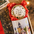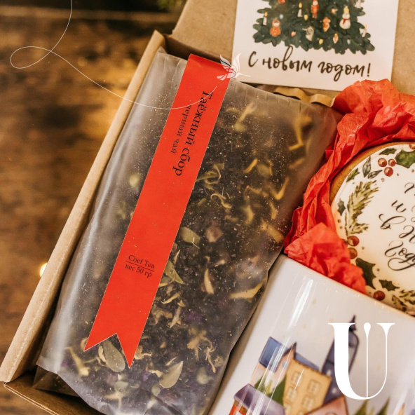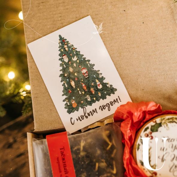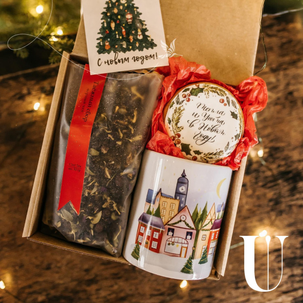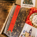 Осенний подарочный набор из клюквенного джема с грецким орехом, медово-имбирный пряник, ароматный чай и открытки