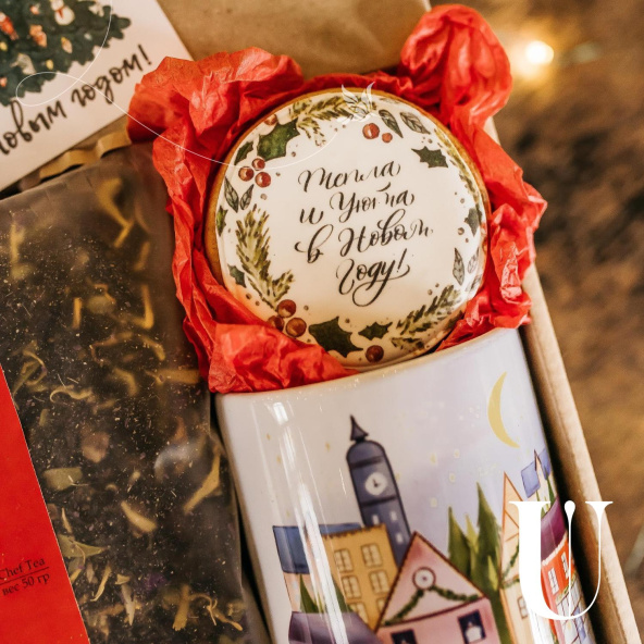 Подарочный набор из стакана, дрип-кофе, пряника и кокосовой конфеты