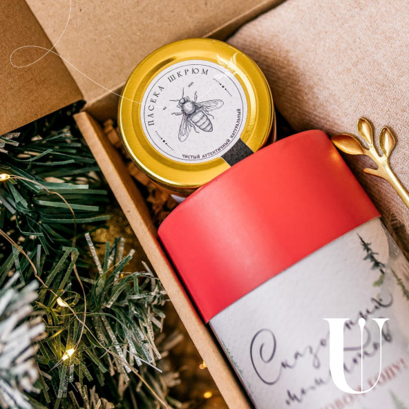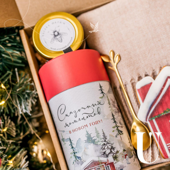 Подарочный набор из ароматного чая, цветочного меда, ложечки для меда и конфет из манго