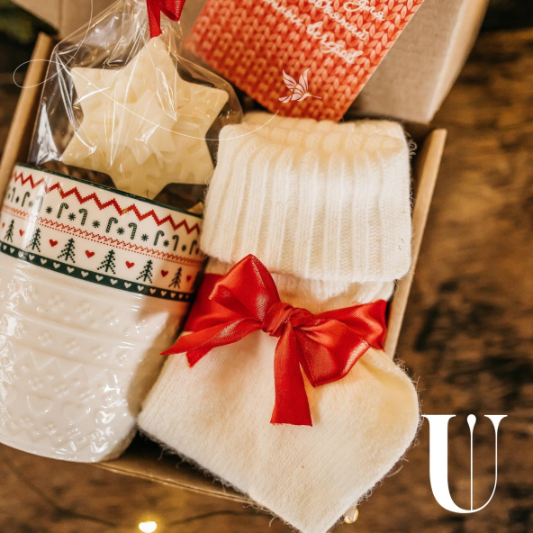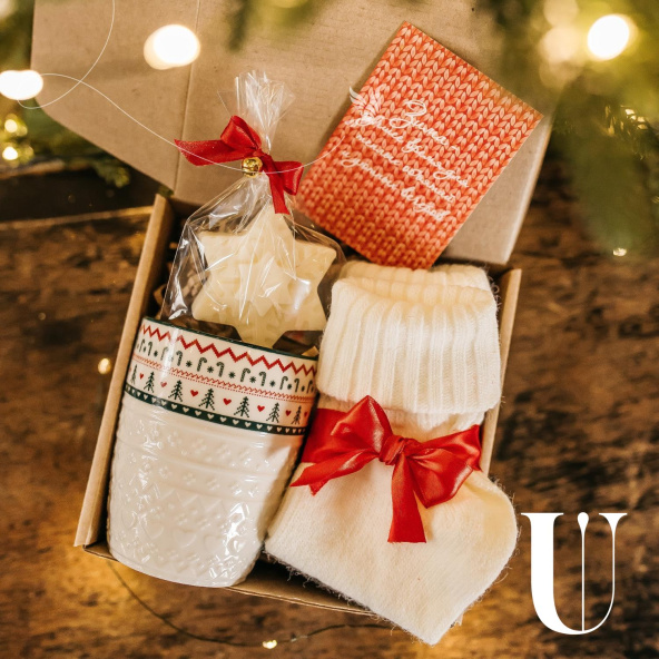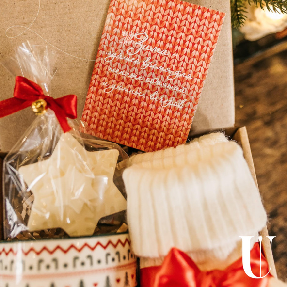 Подарочный набор из шерстяных носочков, соли для ванны и мыла ручной работы