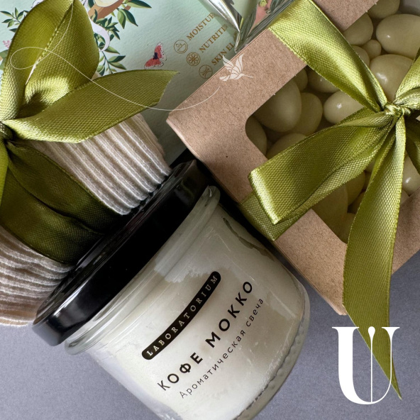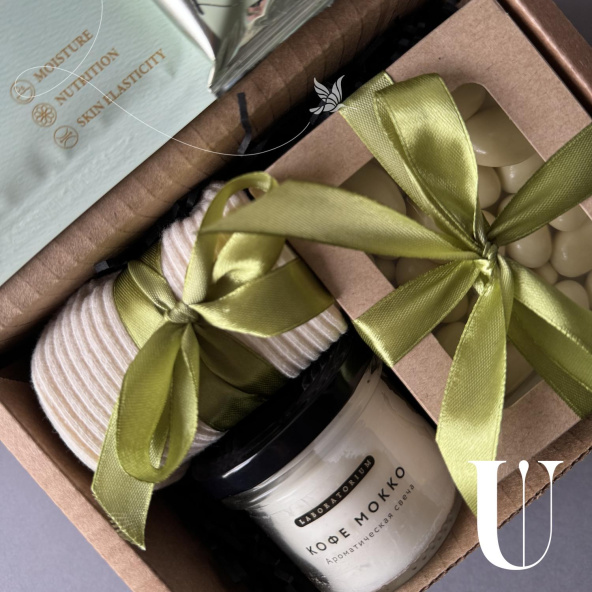 Подарочный набор из ароматической свечи, мягких носочков и керамической кружки