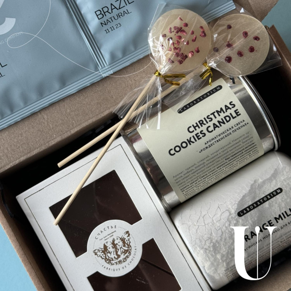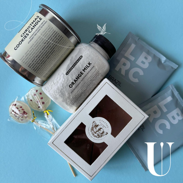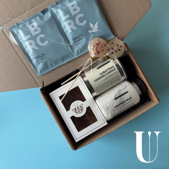 Подарочный набор с молочком для ванны, ароматической свечой, кофе и сладостями. Что еще нужно для идеального вечера?)