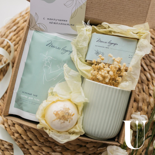 - Набор оформлен в крафтовой коробочке 20*20 с атласной лентой.