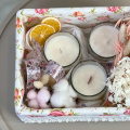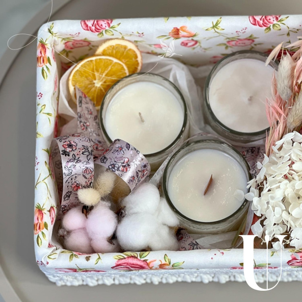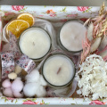 - Ароматические свечи ручной работы из натурального соевого и кокосового воска. Свечи выполнены в стеклянном подсвечнике. Объем свечей 3 по 140 мл;