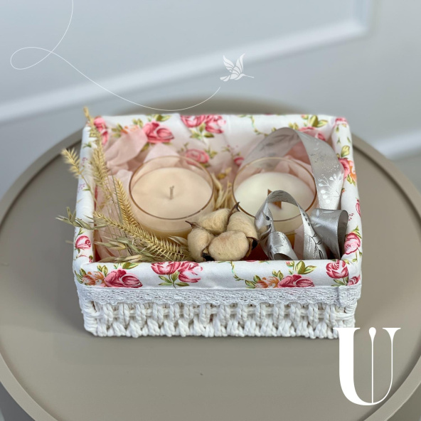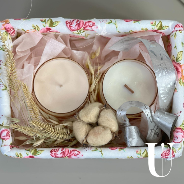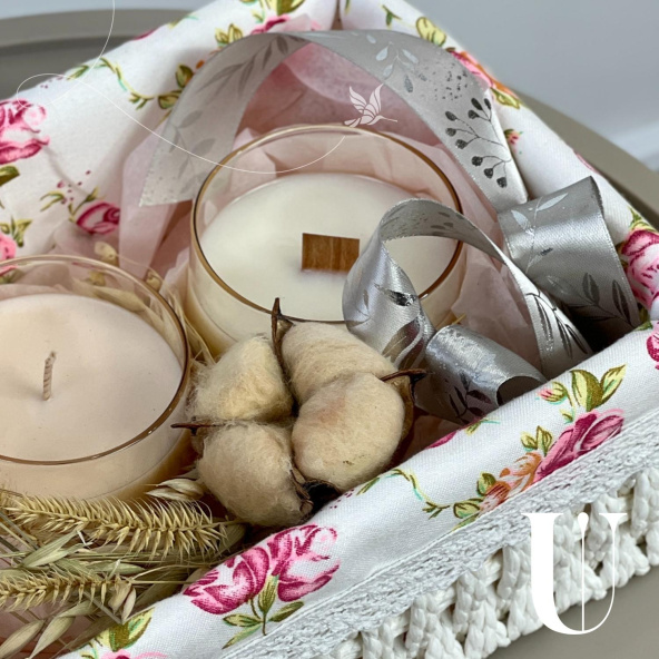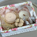Подарочный набор «Мейлис» с ароматическими свечами и сухоцветами в интерьерной корзинке.