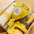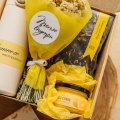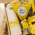 Набор упакован в крафтовую коробочку и перевязан желтой атласной лентой!