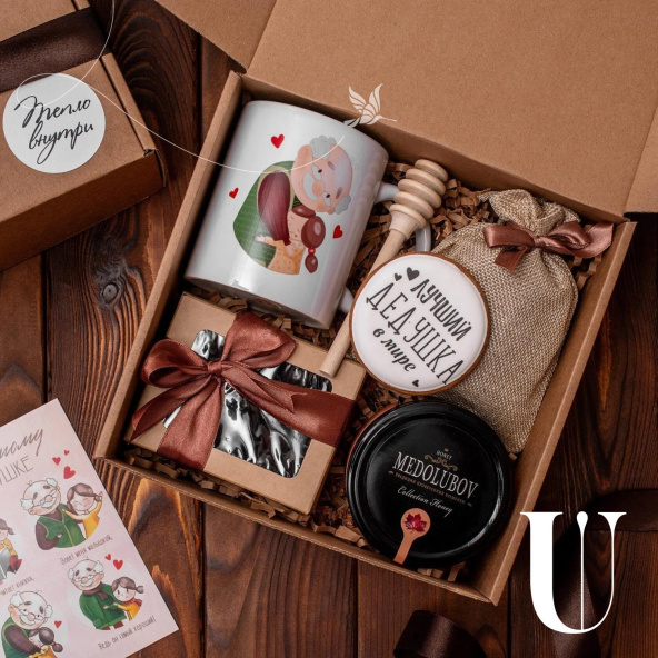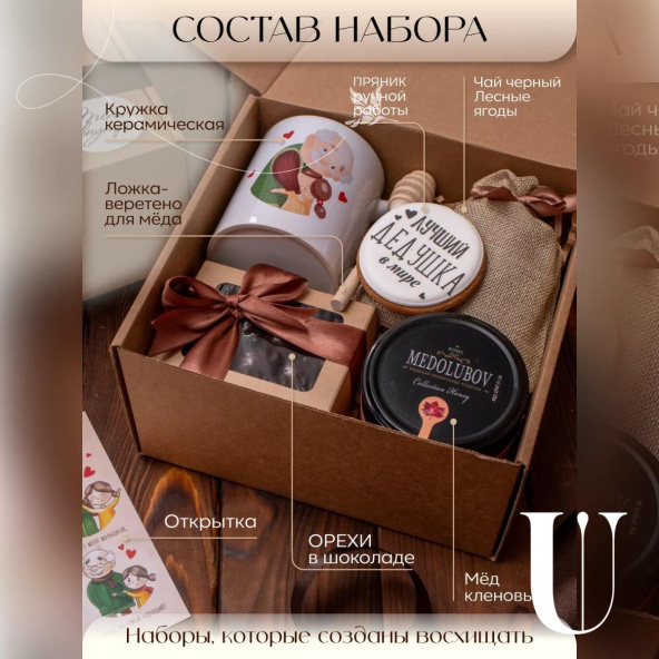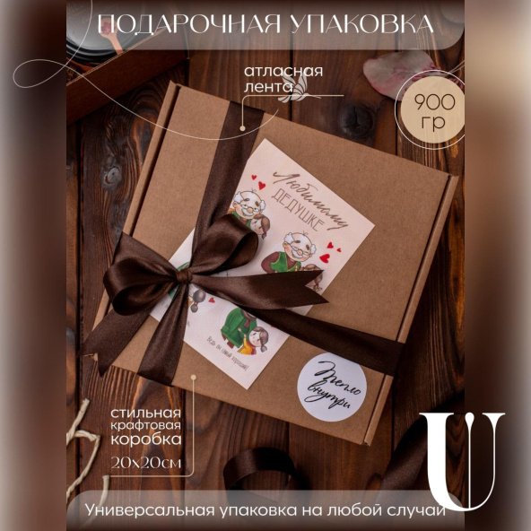 Подарочный набор оформлен в крафтовую коробочку 20*20 см. с атласной лентой. Подарочный пакет в комплекте!