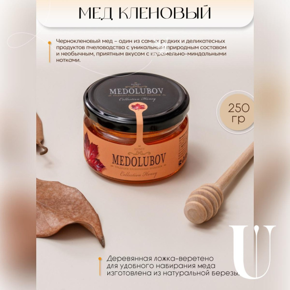 - мёд кленовый и деревянная ложечка-веретено для него;
