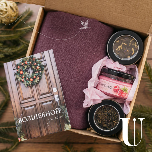Набор оформлен в крафтовой коробочке 20*20 см с атласной лентой.