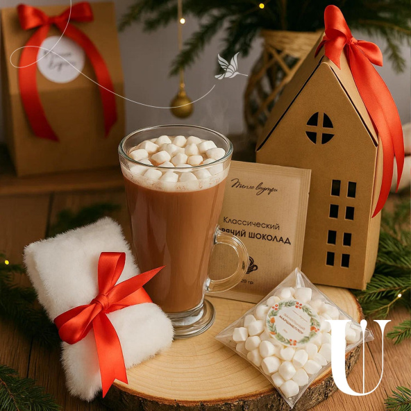 Набор из керамической кружки, горячего шоколада, телых носочков и мармеллоу