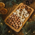 Подарочный набор из соленого миндаля, плитки шоколада, кофе в дрип-пакетах и октрытки