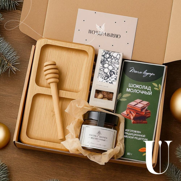 Набор оформлен в крафтовой коробке 23х16 с атласной лентой.