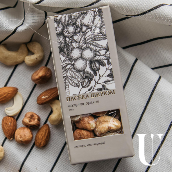 Набор из керамической кружки, ассорти орехов, листового чая, меда и пряника ручной работы