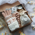 Набор для девушки из палантина, соевой свечи, ароматного чая, пряника и небольшой открытки в деревянном боксе