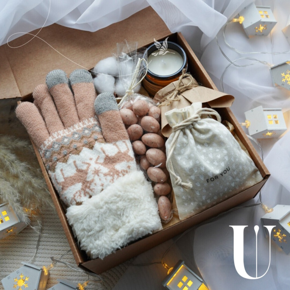 Подарочный набор из теплых перчаток, ароматного чая и термостакана