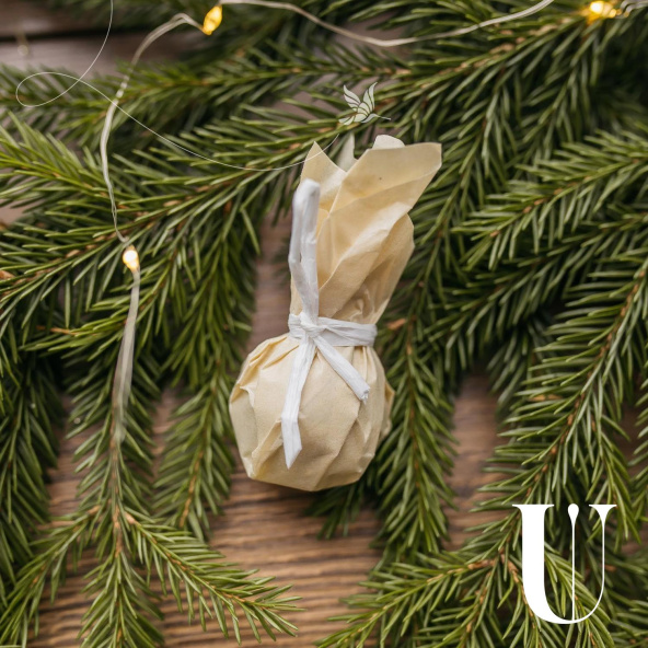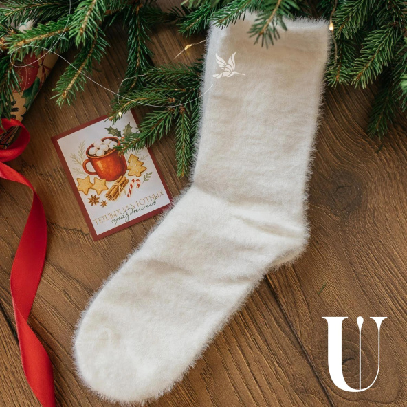 Подарочный набор из шерстяных носочков, гипсового подсвечника, гипсовой вазы, чая и букетика сухоцветов