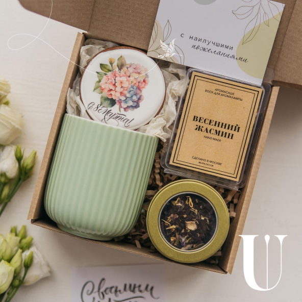 Подарочный набор из кружки, чая, аромасаше, пряника и открытки