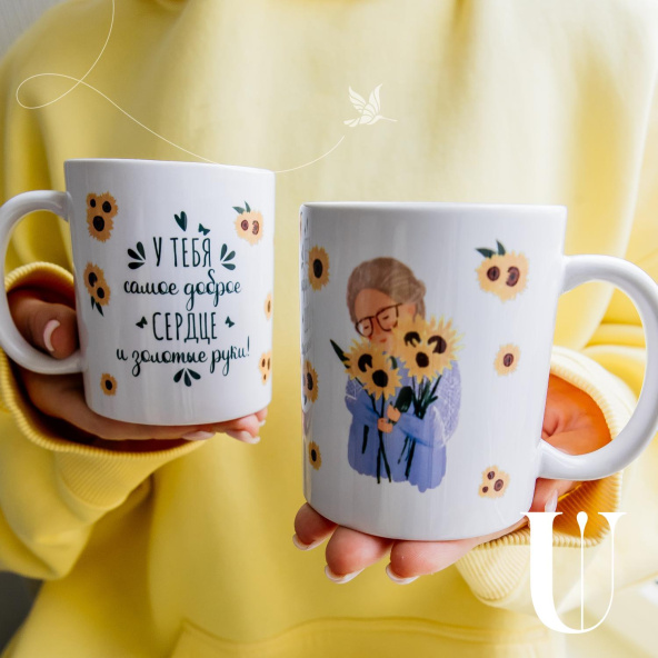 Набор из керамической кружки, мини-зонта, пряника ручной ручной роботы и открытки