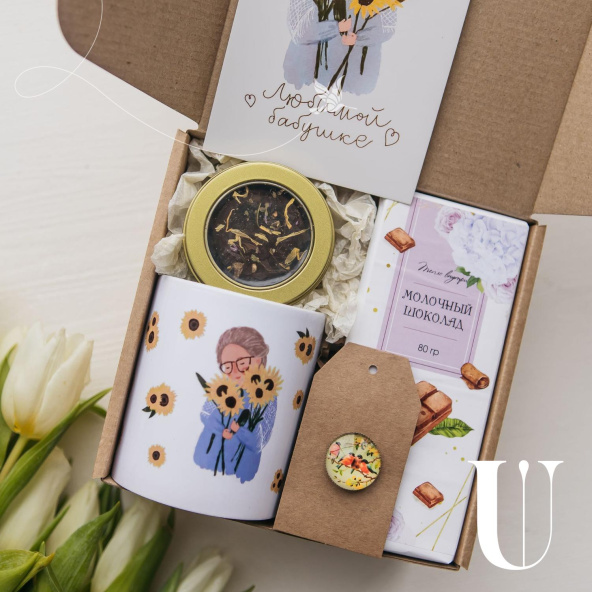 Подарочный набор из кружки, чая, аромасаше, пряника и открытки