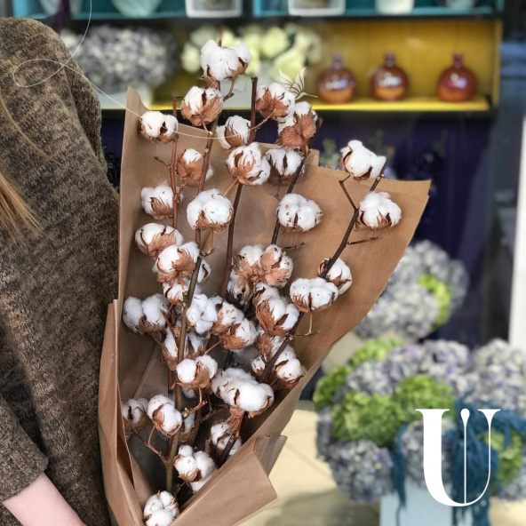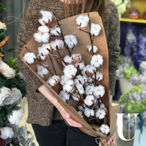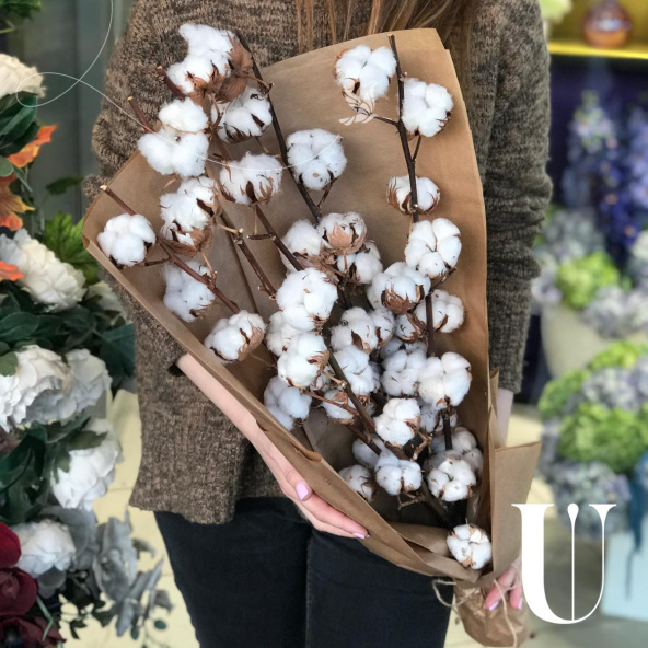 Букет из натурального хлопка. В составе хлопок 5 шт. Упавка крафт.