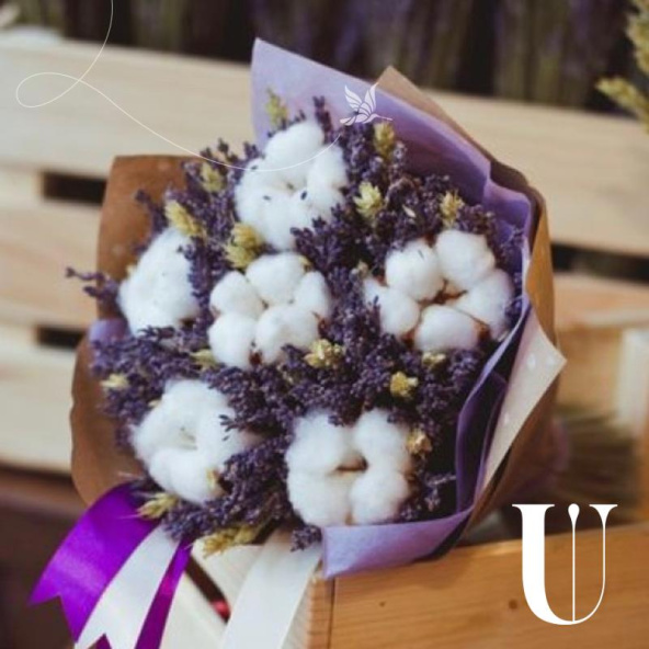Охапка ароматной лаванды и нежнейший хлопок в крафт бумаге