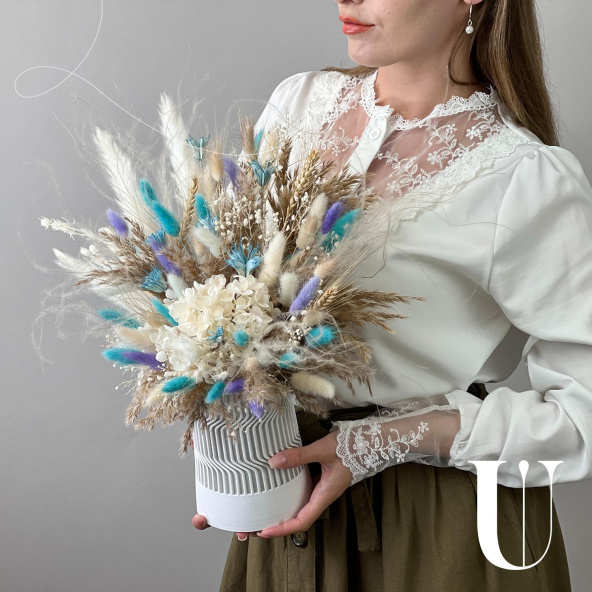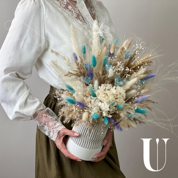 - Ваза керамическая, рифлёная белая (8*15 см.) - 1 шт