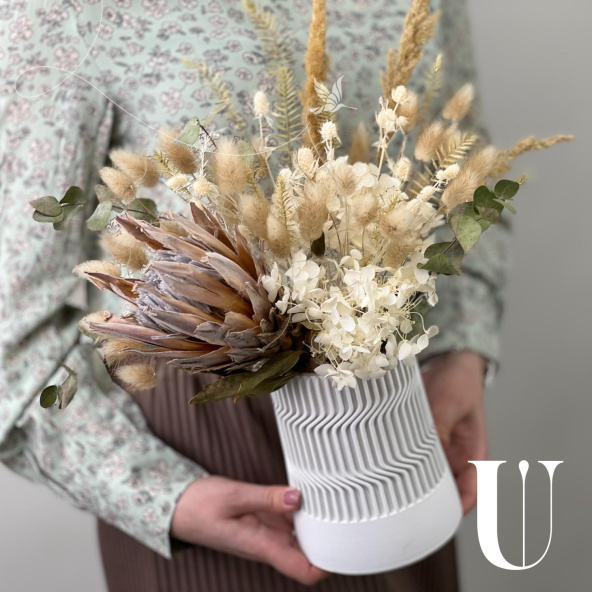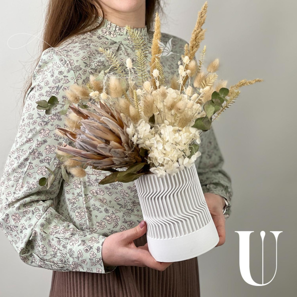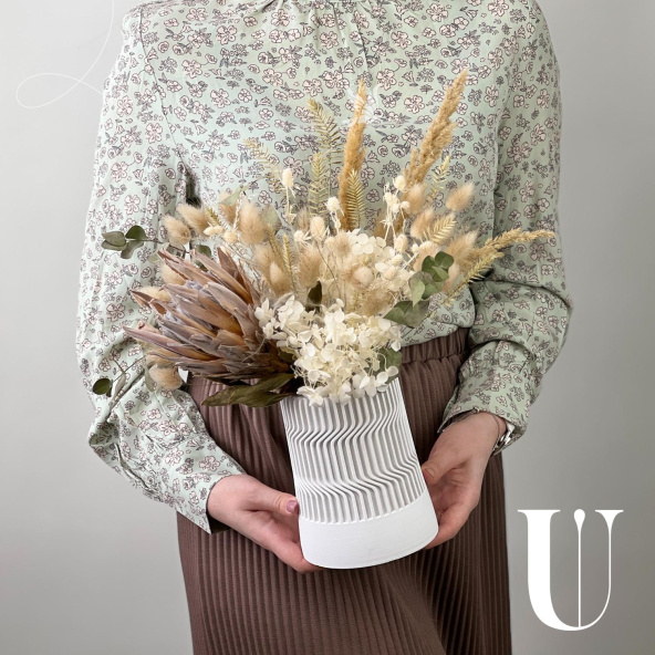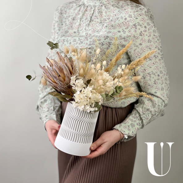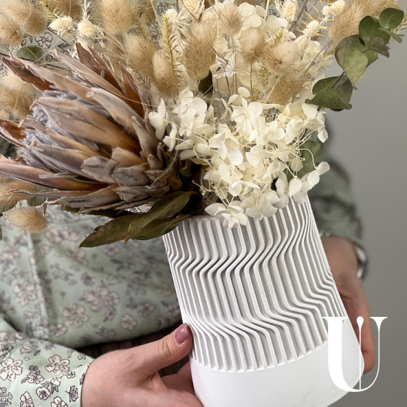 - Ваза керамическая, рифлёная белая (8*15 см.) - 1 шт
