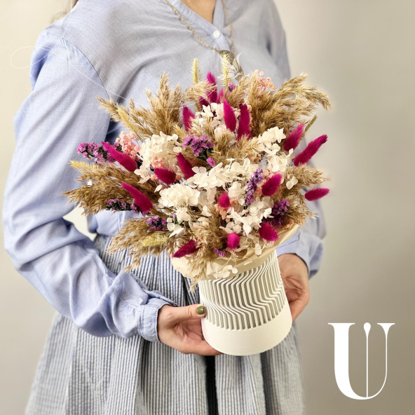 - Ваза керамическая, рифлёная белая (8*15 см.) - 1 шт