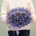 Букет сухоцветов из желтого лагуруса, пижмы и желтой краспедии в крафтовой упаковке