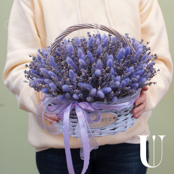 Композиция сухоцветов из розового хлопка, натурального овса, натурального камыша и розовой гипсофилы в