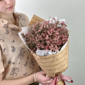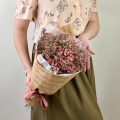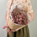 Композиция сухоцветов из розовой гипсофилы, розового лагуруса и ковыля в упаковке