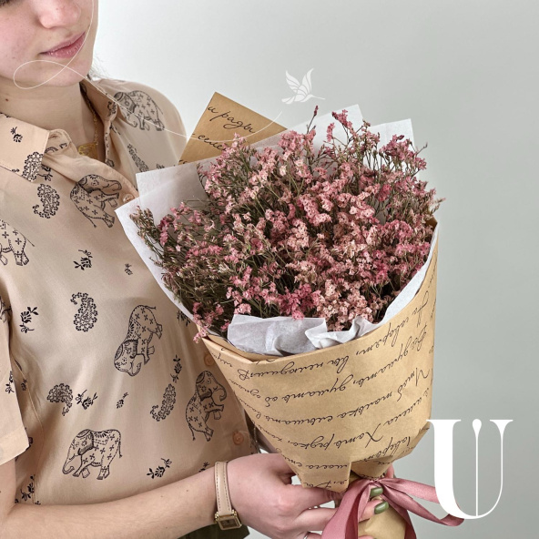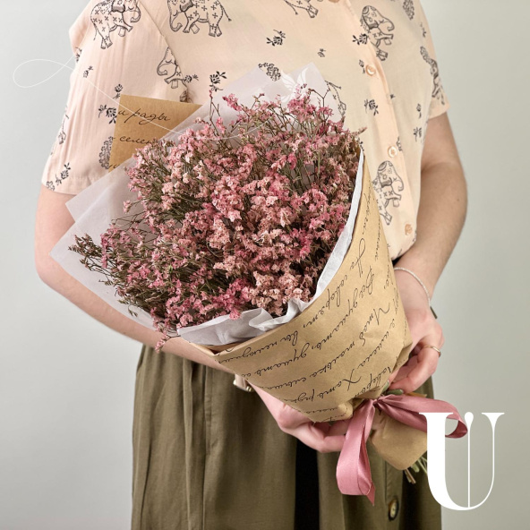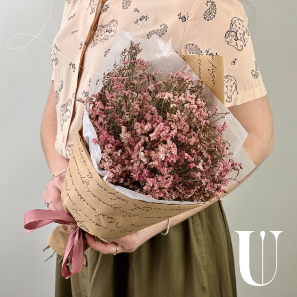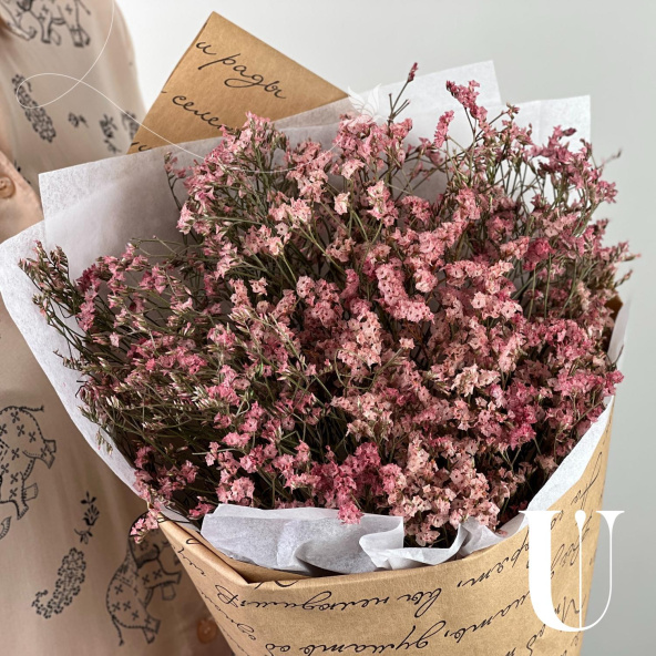 Букет сухоцветного стабилизированного лимониума станет оригинальным подарком, который будет радовать получателя и украшать интерьер долгое время