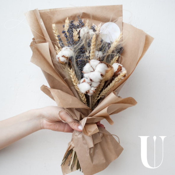 Букет сухоцветов "Букет из лаванды, хлопка, колосьев"