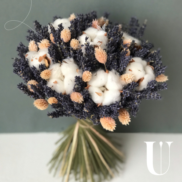 Букет сухоцветов "Букет из лаванды, хлопка, фалариса"