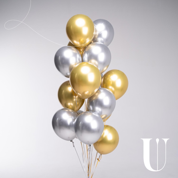 - Латексный шар серебристый (хром) 25 см. - 8 шт