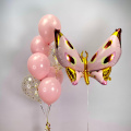 Яркая композиция из гелиевых шаров, которая динамично устремляется вверх, как фонтан из брызг шампанского