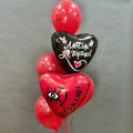 Яркая композиция из гелиевых шаров, которая динамично устремляется вверх, как фонтан из брызг шампанского