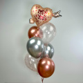 Яркая композиция из гелиевых шаров, которая динамично устремляется вверх, как фонтан из брызг шампанского