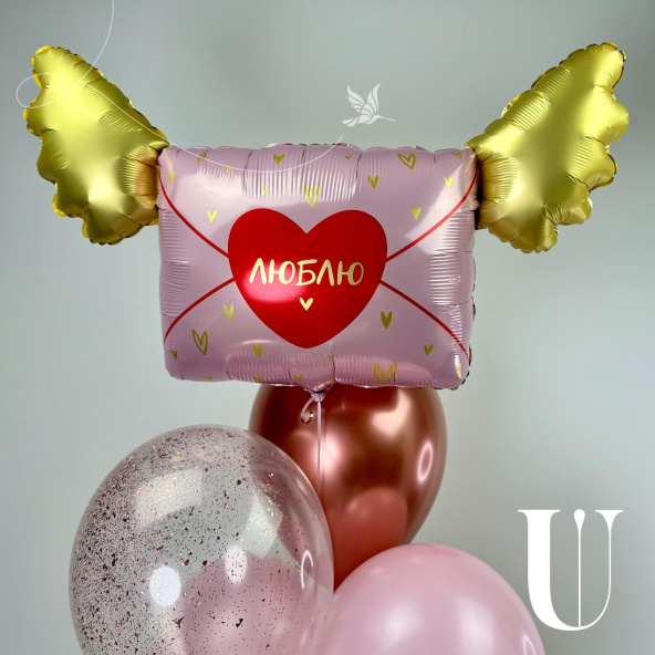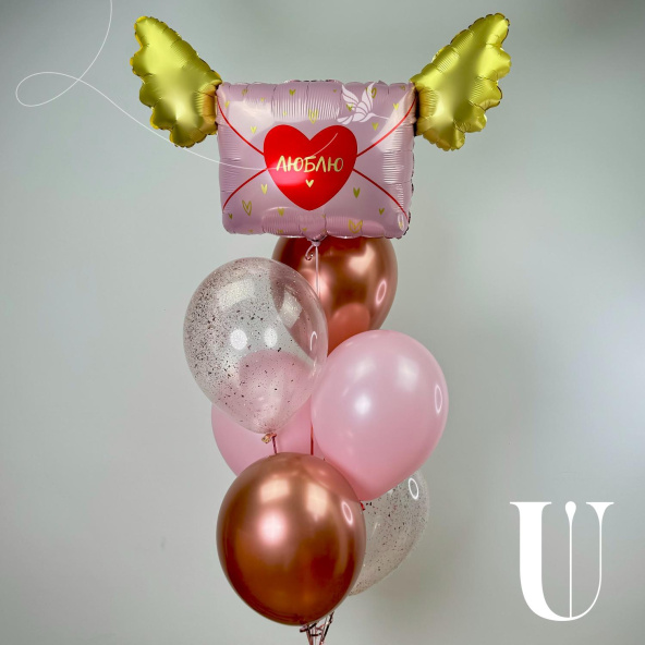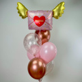 Яркая композиция из гелиевых шаров, которая динамично устремляется вверх, как фонтан из брызг шампанского